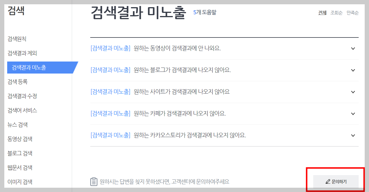 - 문의 예시: "블로그 검색이 안 되어 문의드립니다. 작성한 글들이 검색에 노출되지 않습니다. 문제가 되는 글을 삭제하였으니, 검토 후 블로그 노출이 정상화되도록 부탁드립니다."